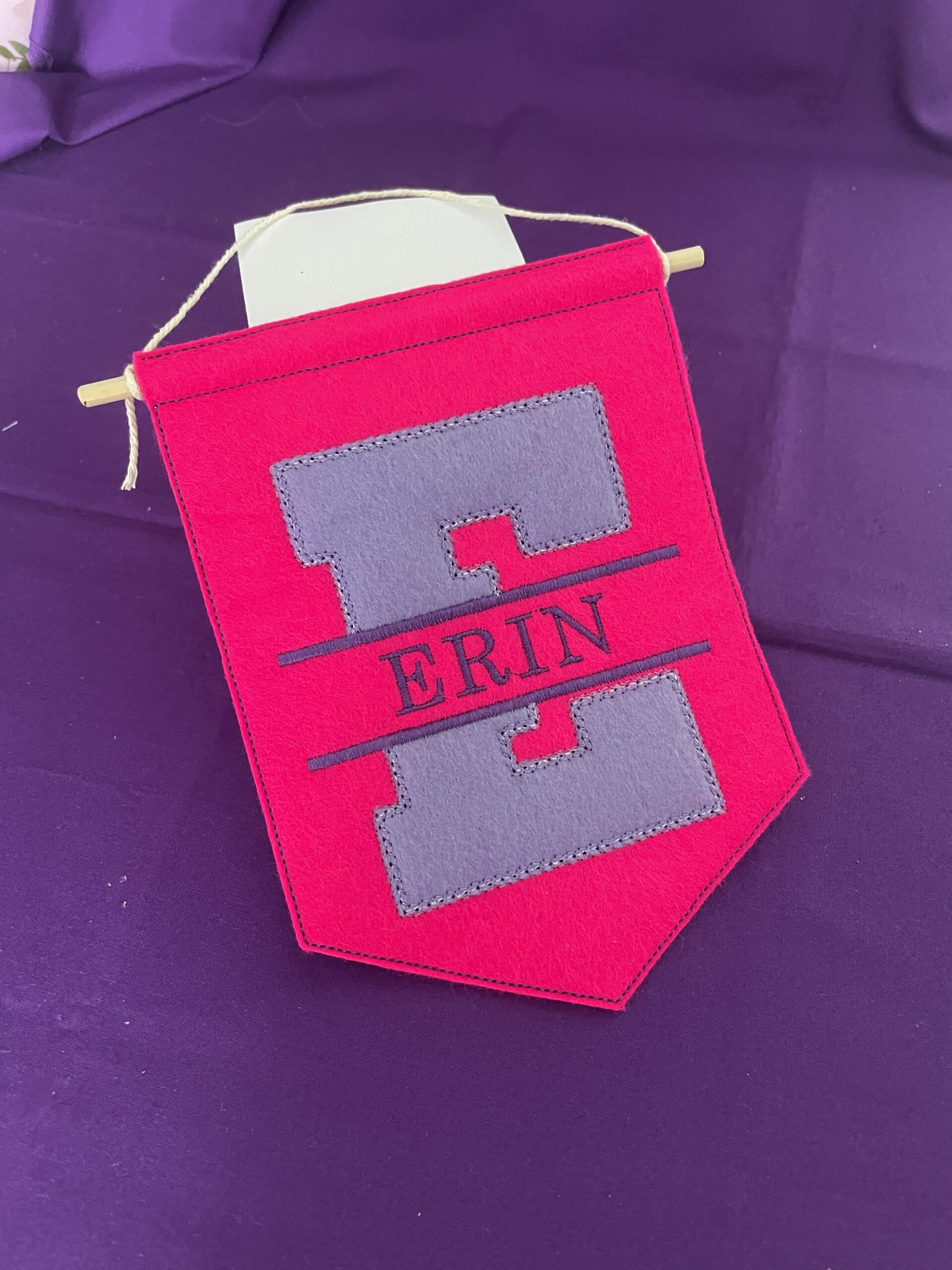 Made in the hoop, you will require a 5×7 inch hoop to create this door hanger