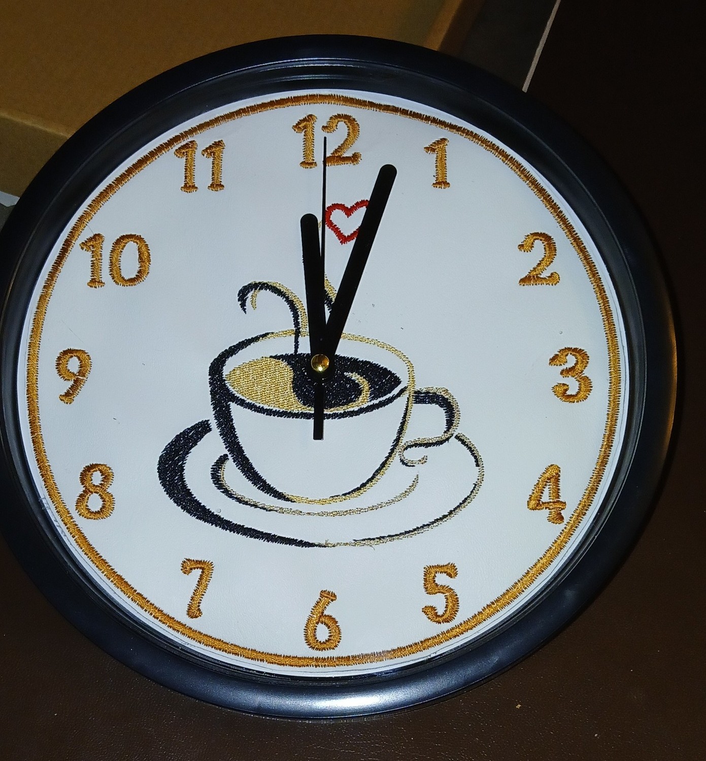 In The Hoop Coffee Cup Clock Face Digital Download Machine Embroidery Design File 8×8 or 12×8 Hoop