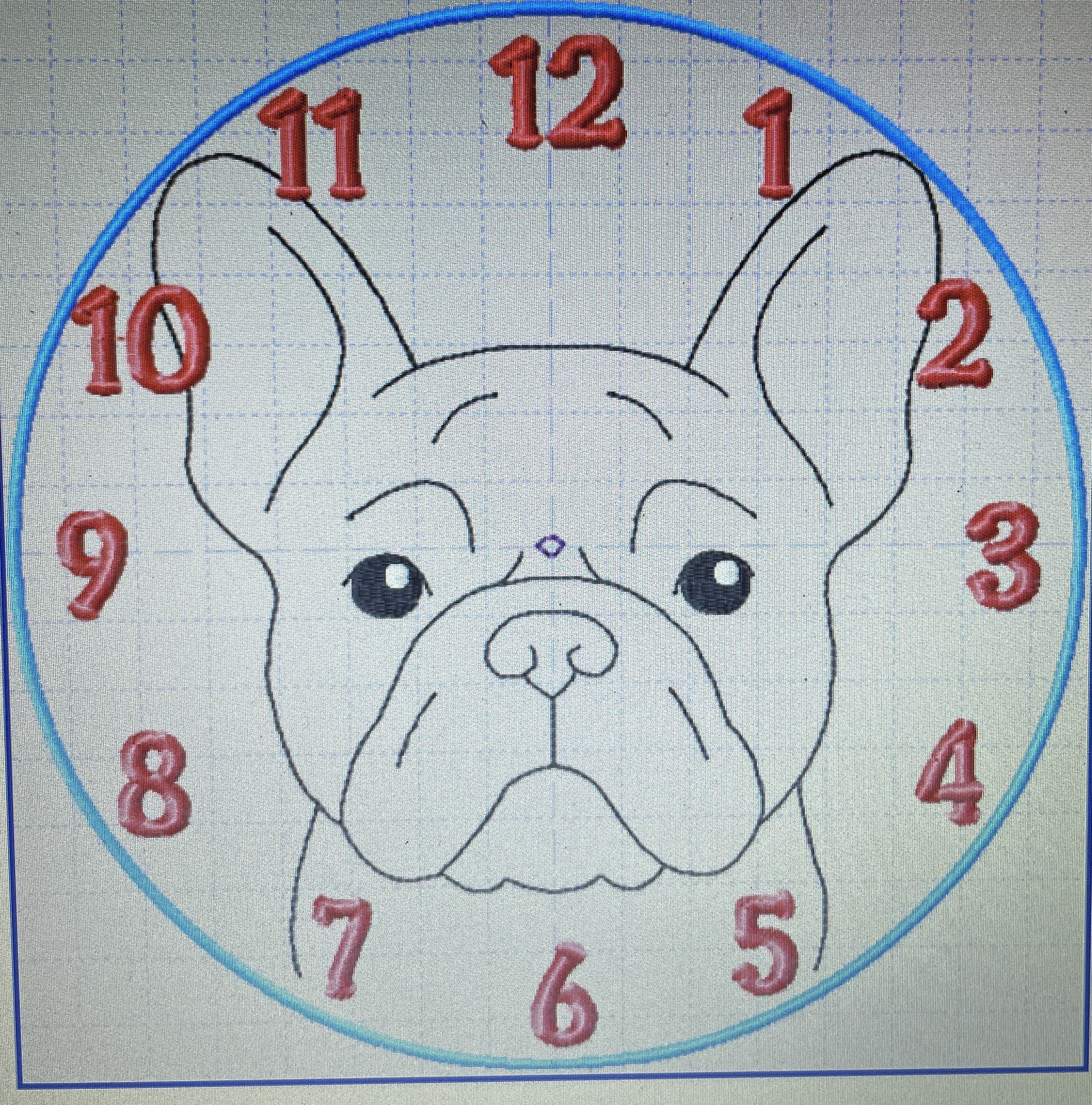 In The Hoop French Bulldog Clock Face Digital Download Machine Embroidery Design File 8×8 or 12×8 Hoop