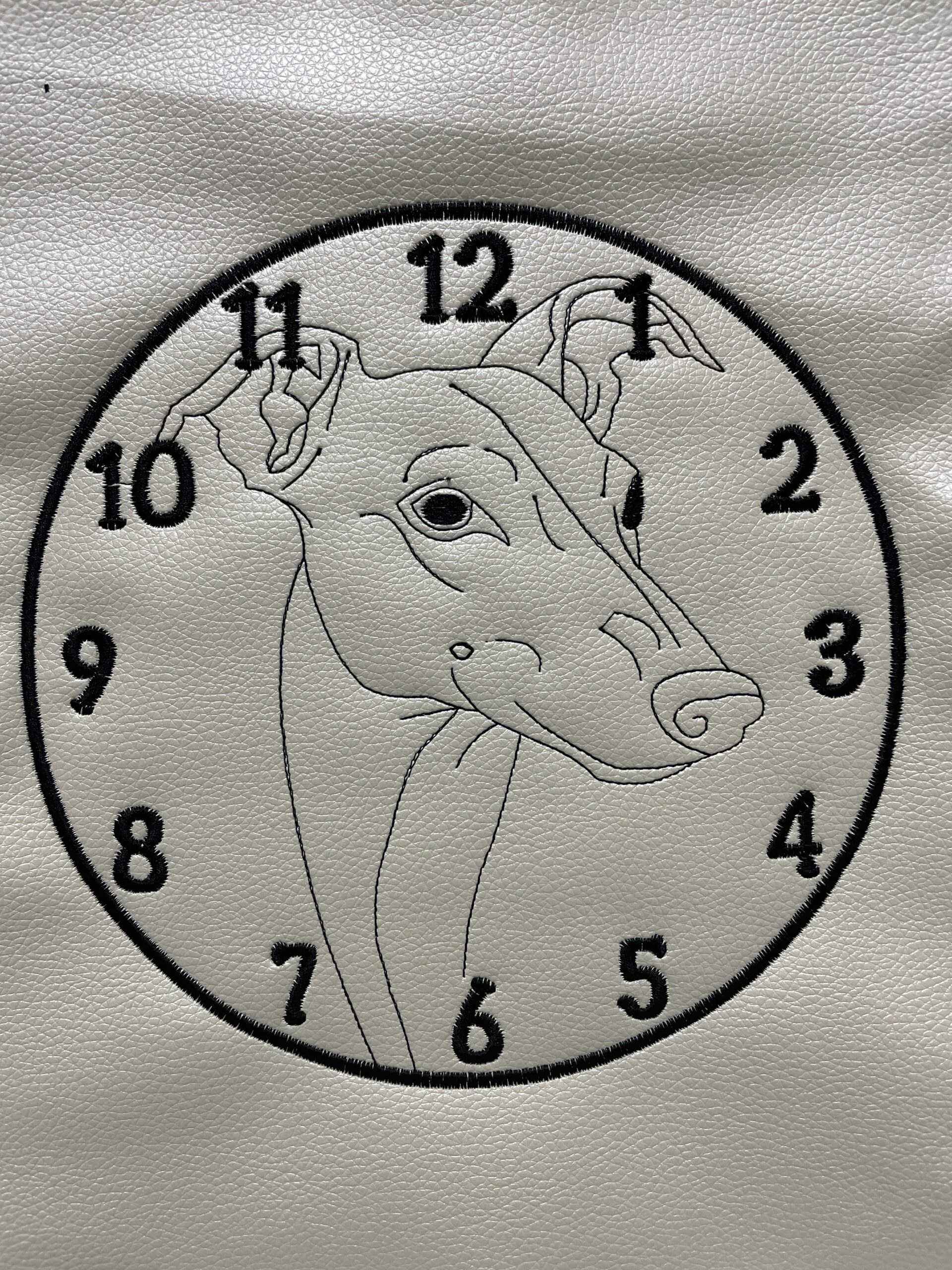In The Hoop Greyhound Clock Face Digital Download Machine Embroidery Design File 8×8 or 12×8 Hoop