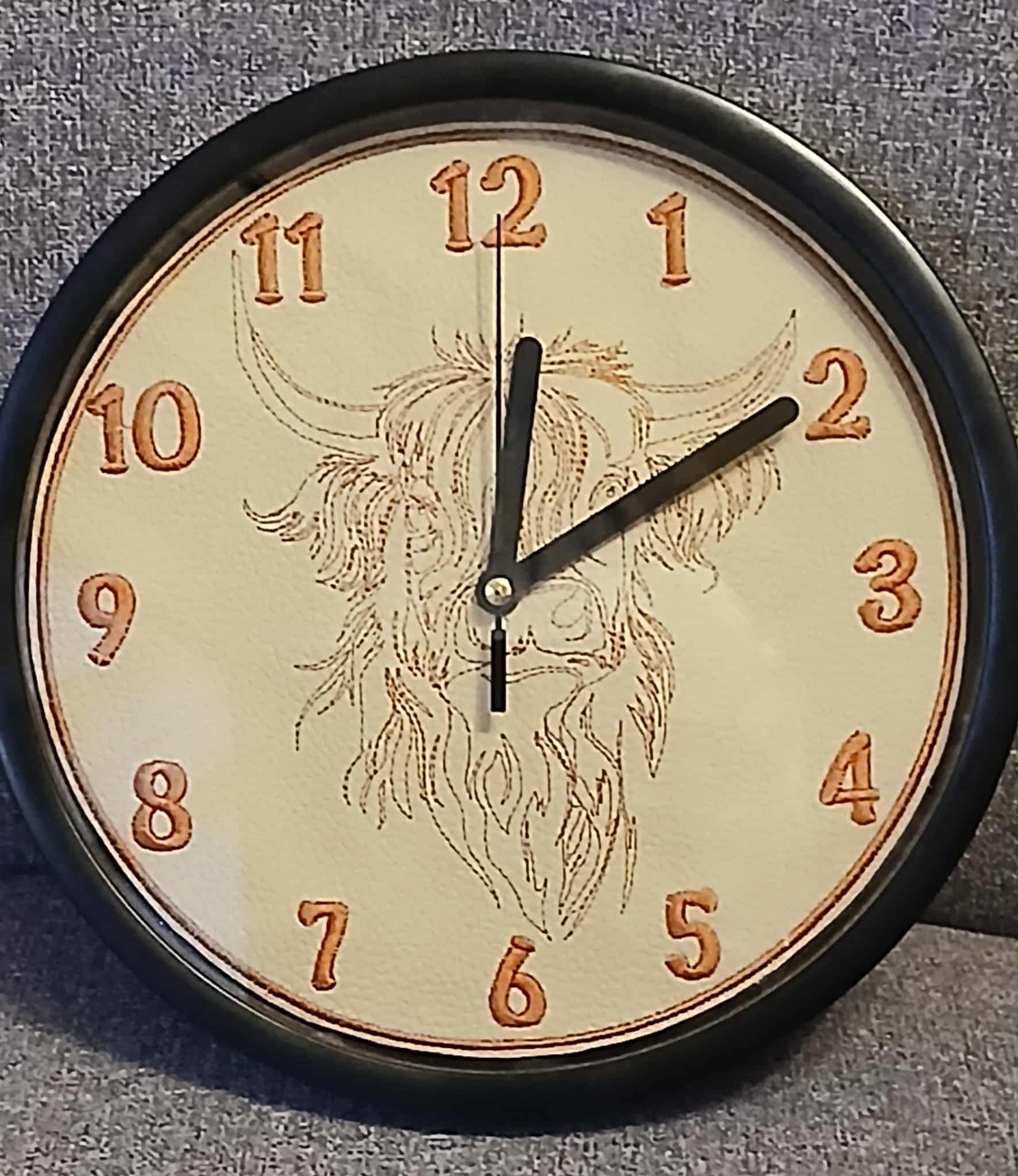 In The Hoop Highland Cow Clock Face Digital Download Machine Embroidery Design File 8×8 or 12×8 Hoop